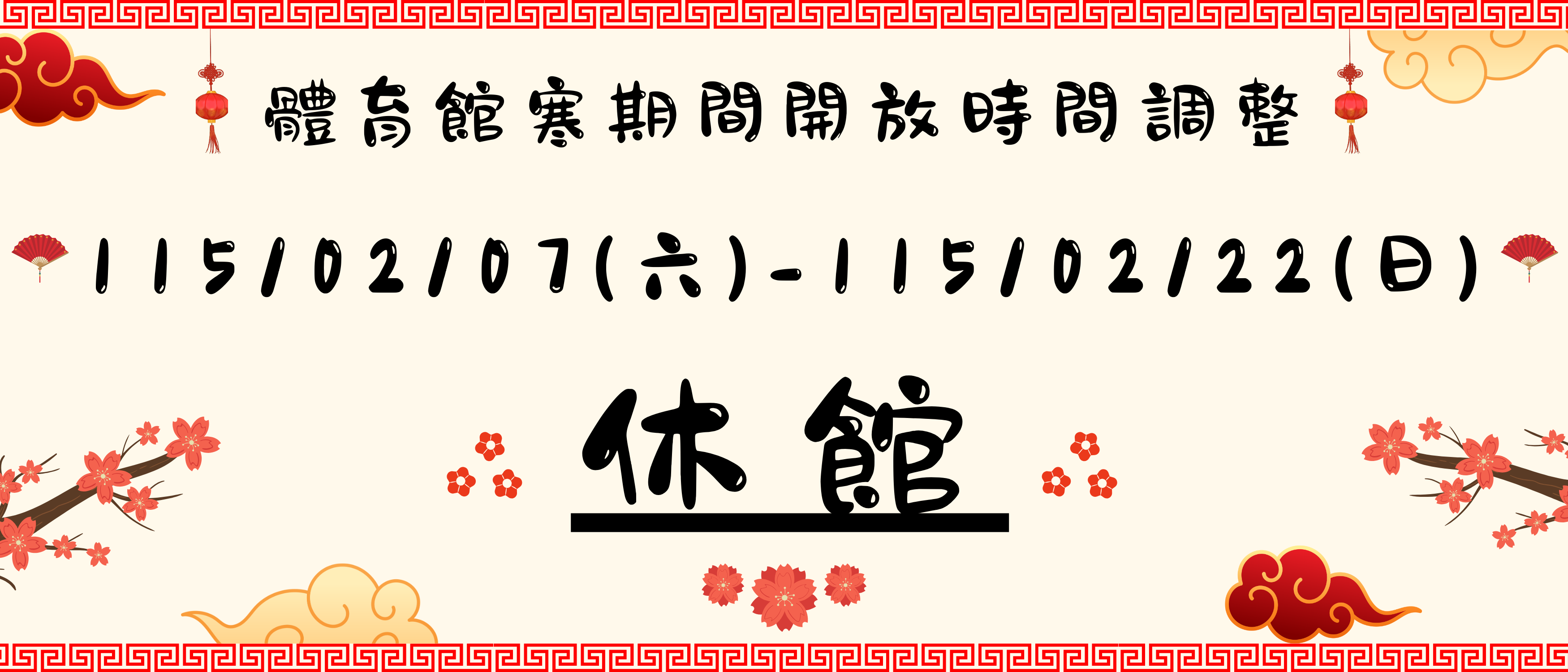 114學年度寒假體育館休館時間調整為115/02/07-115/02/22